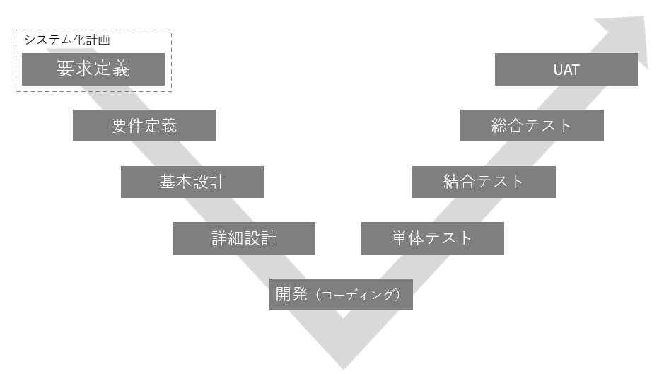 なお本記事では、図中の 要求定義 は発注側主体の「システム企画/システム化計画」に含めて整理します。